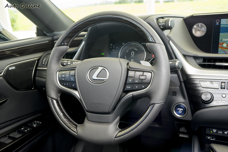 車室內裝從左前車門、前方控台一路連貫至右前車門的木質飾板就可以感受到其環艙設計,給人空間寬闊的印象。前方控台的配置比過去稍微簡潔些,而且也比較內縮與薄形些,講白點就是前座腿部空間會更好些,其實LEXUS前座腿部空間一向很向前方延伸,小腿可以舒適地伸展。而3C科技的發達也促使豪華車對於駕駛介面思維的改變,不再喜歡以繁複的按鈕、旋紐、撥桿分布於前方控台四周,藉以「告訴」乘客:我功能超多所以我很高貴。而是Focus在中控台、儀錶板與方向盤上去顯示與操作,車上操作越直覺不讓人從駕駛過程中分心越好。