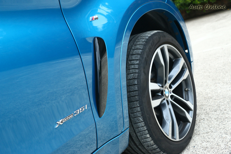 ![]() ▲採用Long Beach Blue特殊車色,配合M款空氣套件(前保桿、側裙、後保桿)又再度加深跑車化元素。![]() ▲前葉子板上有M Sport專屬字樣,開孔能快速排出輪弧內的亂流。
