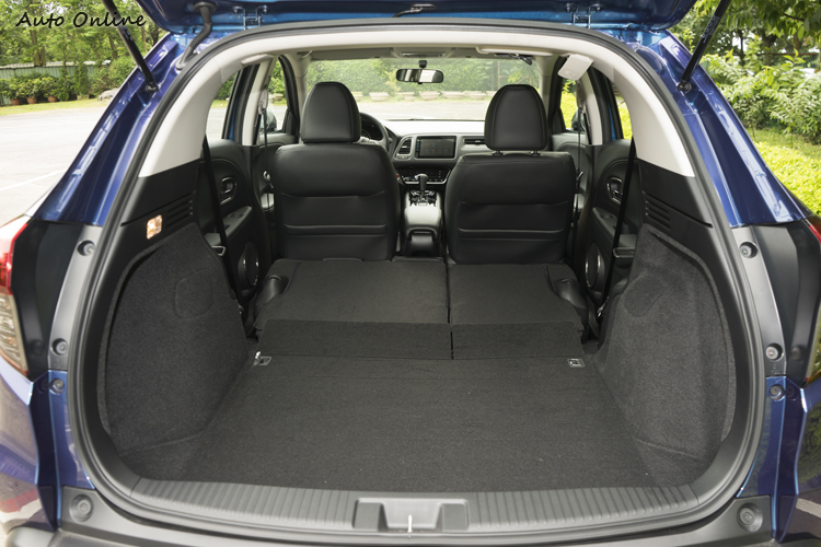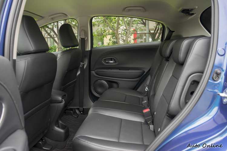空間表現佳且富運用彈性![]() HR-V在空間方面表現就相當不錯。193公分的車室空間長度讓前後座都有寬裕的腿部空間,且後座地板中央僅有微微突起對於乘客在車內的活動比較不會造成干擾。頭部空間或許有人會因為外型上低扁的車頂線條而有所疑慮,不過實際乘坐之下即使是後座也比一般房車更要寬裕一些。由於座椅著座位置較一般房車高,駕駛者的前方視野高度比較接近SUV,上下車姿勢也比較自然輕鬆。 ![]() ▲前座乘坐空間充裕,側墊包覆性略弱些。![]() ▲後座腿部空間優異,頭部空間也沒因造型而被犧牲。由於全車系配備電子式駐車煞車,前座中央鞍部也能有更多的收納空間。排檔座後方的雙置杯座設計上頗有巧思,裡面的擋片除了具有包覆固定大尺寸飲料杯瓶,避免翻倒外,還可翻折成為墊高的底部,放置小尺寸杯瓶時取用上就更方便,是很實用的機能。置杯座後方有個不算大的置物空間,形狀方正且夠深,加上上揚式鞍座前方的置物盒與鞍座下方的鏤空形成的隱藏置物區,可以提供手機或其他小物的收納與充電。 ![]() ▲高實用性行李空間翻倒後座可直接放入兩部越野自行車。![]() ▲後座椅墊可以上掀,可放不適合倒放的長物品。