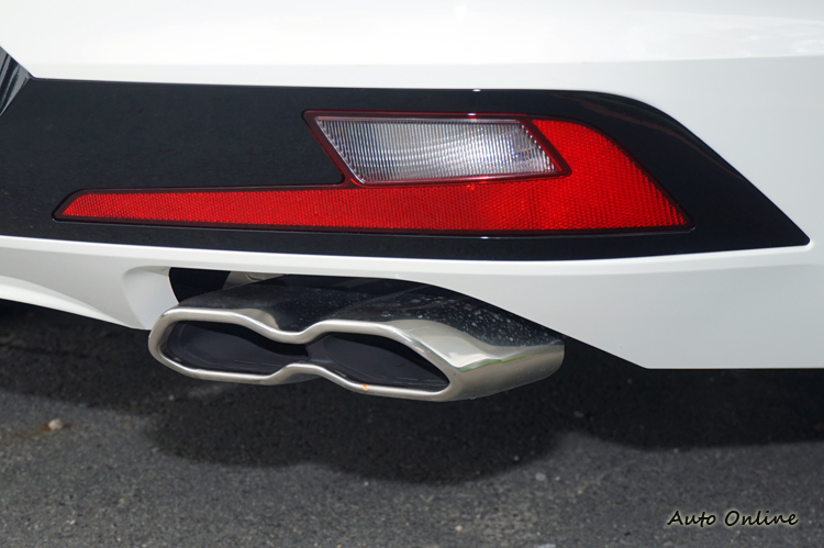 牌照框則改為整合至後保桿之中,搭配車體分流器與右側雙出的排氣尾管。不過仔細看喔,這雙出尾管並非圓形,而是有點不規則且相連在一起,在視覺上給人不同的感受。