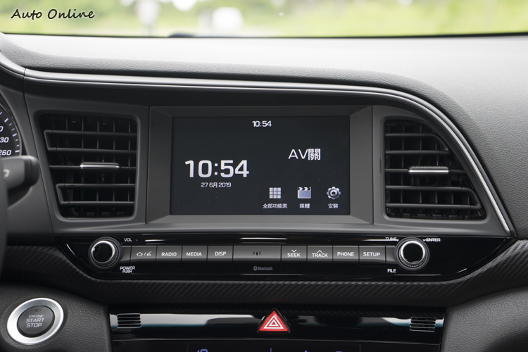 中控台中央的七吋多媒體觸控螢幕影音系統要在高規的Sport極速車型中才有標配,畫面的圖形與版面呈現已是與Kona、新Tuson同步的新一代設計,功能上則與改款前差不多,除了影音撥放、廣播、倒車顯影、支援藍芽免持通話與播放外,也支援CarPlay與Android Auto等行動裝置整合平台。恆溫空調控制介面下方的置物空間同樣也是在Sport極速車型上才有支援Qi行動電話無線充電功能。音響系統改款前配備了原裝的INFINITY八揚聲器系統,這次則有所降級,應該是出於削減成本考量。