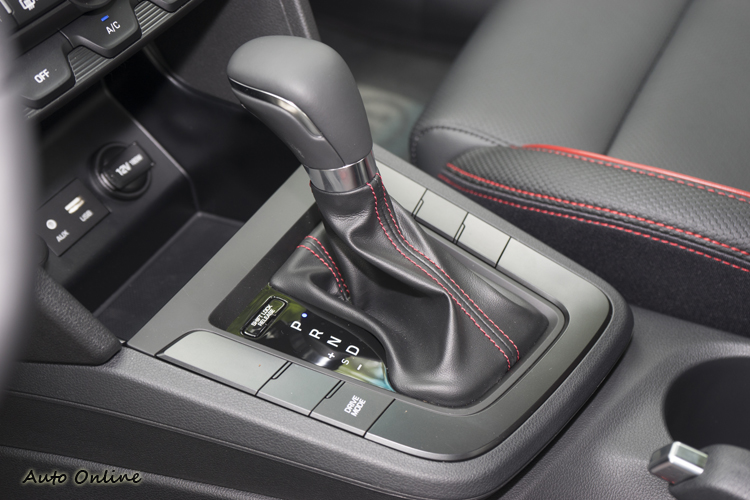 雙前座配備跑車式樣座椅,跟方向盤、中央扶手一樣以紅色縫線來添加一點氣氛(又不自禁地想到韓規的紅色座椅更構誠意啊~),因為車子是性能化取向,所以座椅支撐感略帶硬調也是合理的,重點是側邊的包覆支撐有到位,才能應付比較激烈的操駕情況。