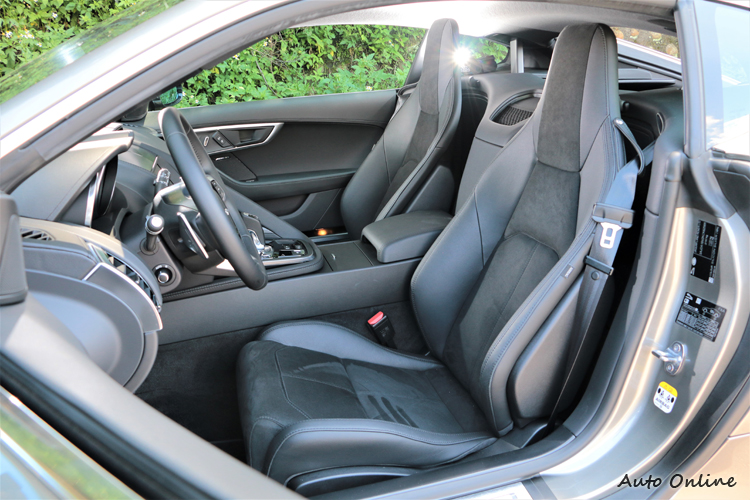 ![]() 車內的變動幅度不大,還是維持Jaguar經典傳統,像是可自動啟閉的冷氣出風口、雙圓式儀表板、三圓旋鈕式冷氣介面等,都與我們之前所試駕F-Type相同。雖然整體造型變動幅度不大,但是配備卻有很明顯升級,首先中控台螢幕從原本的8吋升級為10吋,中文化衛星導航、InControl Apps智慧型手機連網應用程式等都列為標準配備。 ![]() ▲座椅改為麂皮與真皮包覆,椅面使用麂皮可提高摩擦力。![]() ▲後行李廂408L的容積對於兩人非常夠用,反正在多一位乘客車內也坐不下了!