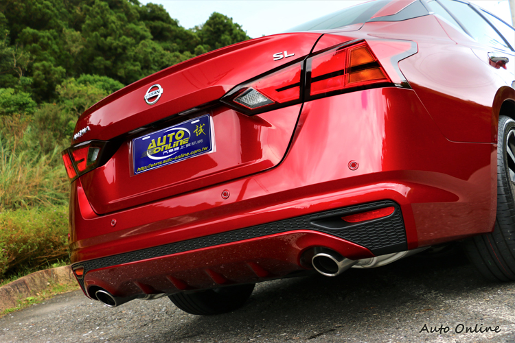 品牌家族化大顯身手![]() ▲前臉採用V-Motion 2.0設計元素,大面積鋼琴烤漆前格柵加上鍍鉻飾條,霸氣成為我對他的第一印象。全新第六代Nissan Altima有著很大的進化,首先外型跳脫Teana穩重的神韻,取而代之的是跑格化的運動線條。從車頭看去,前臉採用V-Motion 2.0設計元素,大面積鋼琴烤漆前格柵加上鍍鉻飾條,霸氣成為我對他的第一印象。兩邊修長的頭燈組內部採用LED光源,帶來較遠的照射距離且能減少耗能;車側低扁的車頂線條並結合懸浮式車頂樣式,展現出運動跑格風格,並有媲美GT-R等級的0.26風阻係數。 ![]() ▲下方排氣管採用左右單出,聲浪比起外觀就低調許多;中間的後下擾流與車身同色,視覺效益大於實際功效。