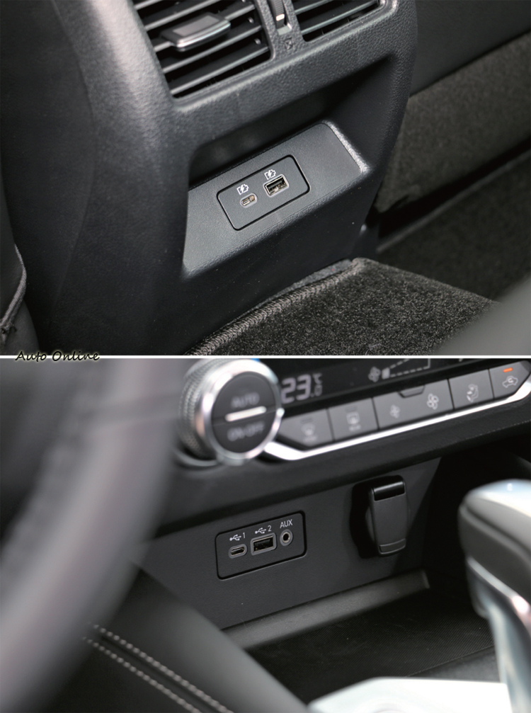 簡潔有力的內裝鋪陳![]() 打開扎實的車門坐進車內,會發現與外觀有著相同的簡潔有力設計概念,簡化了很多繁瑣的按鍵。中控台主要可分為上下兩層,上層搭載8吋智慧影音多媒體螢幕,以實體按鍵與觸控螢幕來控制車內影音系統,支援Apple Carplay大大提高便利性。下方則是空調介面系統,左右兩顆大大旋鈕搭配上按鍵,操作直覺反應非常有人性化。 ![]() ▲前後座都有一個Type-A與Type-C插孔非常貼心。![]() ▲內裝木紋飾板加上類碳纖維飾板是一種混搭風格。![]() ▲前後NASA零重力體感皮質紓壓座椅,如同早期所聽到的3D紓壓座椅。![]() ▲唯一美中不足是後座出風口只搭載在卓越旗艦版車型,豪華菁英版車型則無後座冷氣出風口。![]() ▲行李廂空間達到580幾公升,也支援後座6/4分離傾倒。