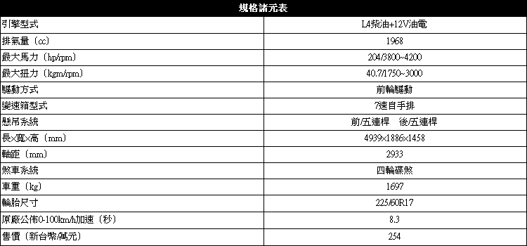 ▲204匹的最大馬力與40.7公斤米扭力峰值已經充分發揮柴油引擎的特點。