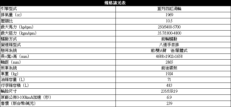 ![]() 外觀則有LED遠/近光頭燈(具自動轉向功能)、全景電動天窗、亮黑側窗飾條、亮黑後視鏡、方形左右側單出尾管、19吋五輻雙肋專屬式樣鋁圈等配備。 ![]() ▲全景電動天窗。![]() ▲19吋五輻雙肋專屬式樣鋁圈。