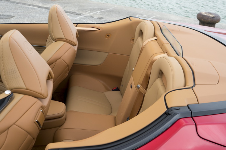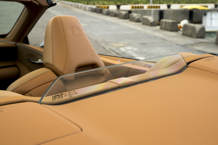 此外,在後座後方特別設計了一片迴風板,來阻擋從前方通過乘客後再從後方捲回來的氣流,讓乘客頭髮不會被吹亂,也降低了風切噪音。開篷狀態開車時會覺得風主要是在左右側擾動,而且就算跟旁邊副駕駛座上乘客講話也只要稍微提高音量,不用扯著嗓著大喊,這樣的優雅從容當然是LC Convertible身為豪華敞篷跑車所應有的。