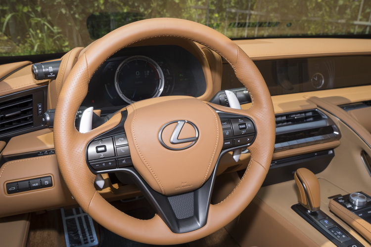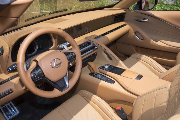 內裝設計基本上與硬頂車型相同,大比例使用真皮、、Alcantara人造麂皮及金屬來鋪陳車室。駕駛姿勢不像大部分其他LEXUS車那樣地讓小腿向前伸直放鬆(小編:駕姿比較接近一般車,會更適合激烈一點的操駕的概念嗎),且不論是踏板、操控按鍵的配置、方向盤傾斜角度與座椅的包覆設計等,都考慮到駕駛時能夠更直覺就手。