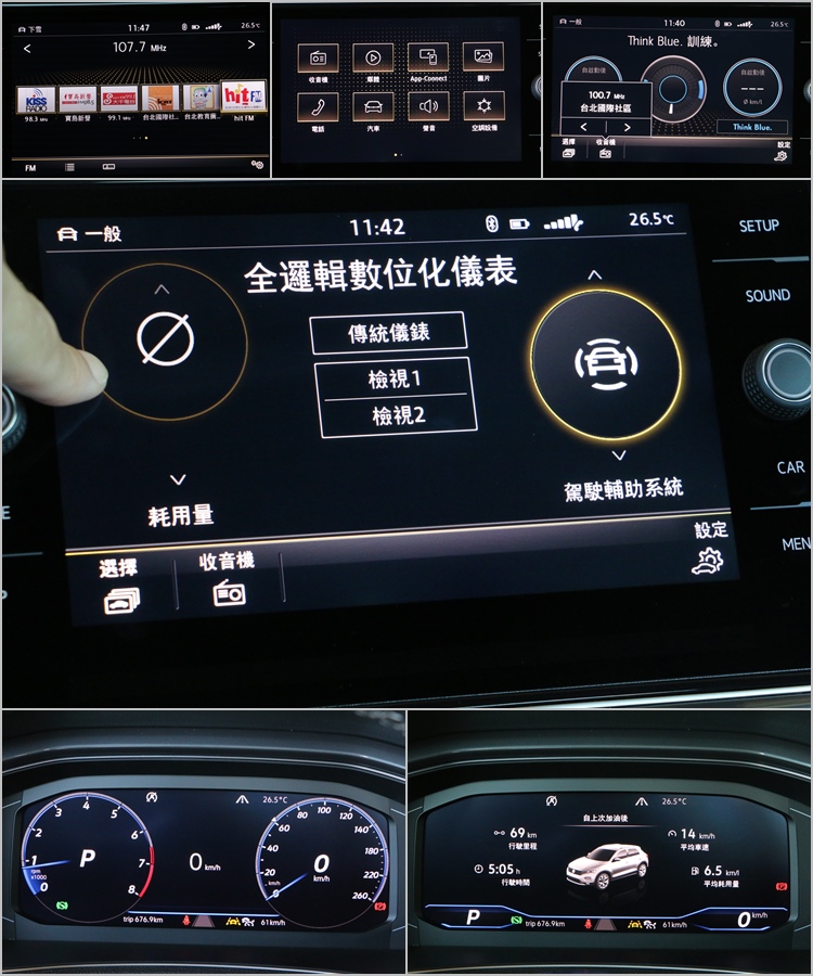 這組儀錶無論圖像或全中文化的介面設計都很直覺,並且提供模擬雙環與全螢幕兩種顯示模式,後者能讓各項資訊同時在更大的區域同時顯示,對於掌握行車動態相當有幫助。位於控台中央的玻璃鏡面8吋多媒體觸控主機,可同時支援福斯智聯、多媒體鏡射Apple Carplay與Android Auto連線、藍牙/串流音樂/USB音源輸入等功能,該有的一樣都沒少。
