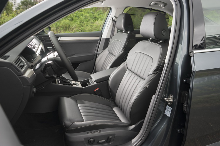 座椅是採用黑色真皮包覆,比較屬於一般房車種舒適取向的造型式樣,與SportPlus車型配備的運動化座椅不同。雙前座都有八向電動調整功能(駕駛座含三組記憶功能)。前座頭部與腿部空間與旅行車型沒什麼差別,後座因為車身形式關係頭部空間自然比旅行車略少一點。但不管怎說,在同級中乘坐空間皆是前段班的表現。