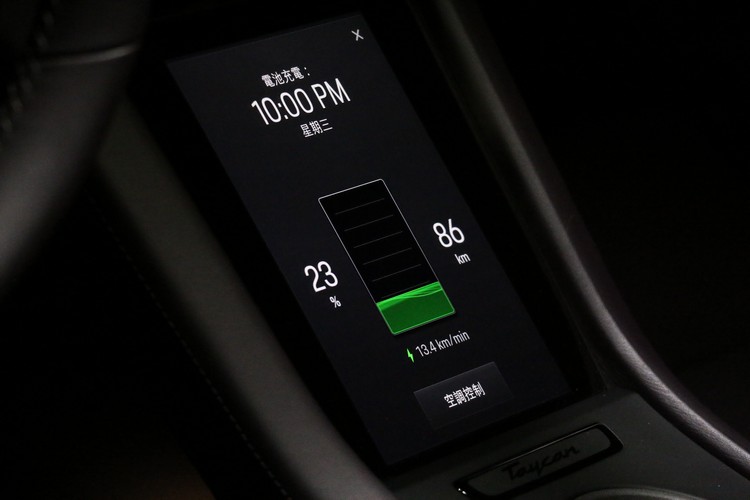 Taycan真正厲害的就是靠著800伏特電力科技,可以支援CCS1規格DC(直流電)快速充電;雖然DC充電設施因為建置成本比較高的緣故,數量遠不及AC來得多,不過目前保時捷在全台的展間和車潮聚集地,已經佈建了18支Porsche Turbo Charger高速充電裝置,靠著這套設備,只要充電5分鐘就能讓Taycan多跑100公里,就算從5%充電到80%所需時間也只要22.5分鐘。由於Porsche這套充電速度比起Tesla的超級充電站更快,也比智慧手機快得多,Taycan車主只需要花個半小時下車上個廁所、拍照打卡再滑個手機,上路後又是一條好漢。