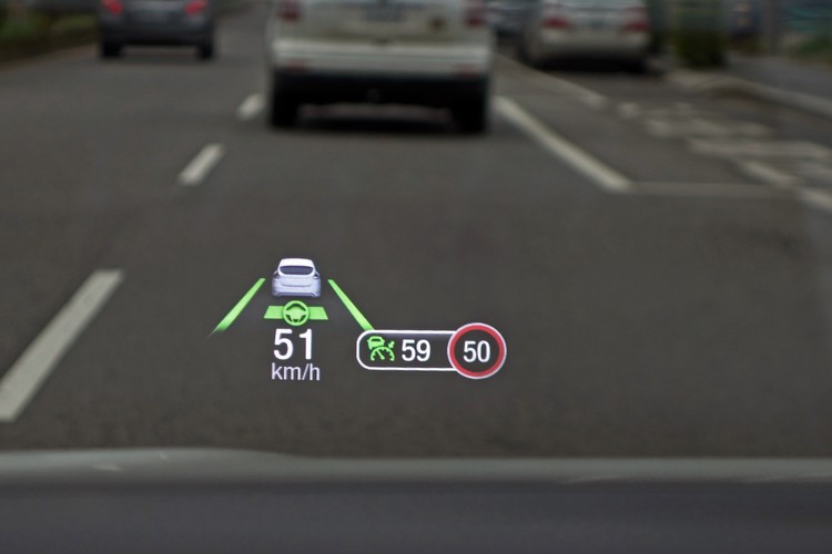 ▲HUD面板可收折,顯示的明暗度、大小和位置都能調整,提供駕駛輔助、速限、和車輛資訊,包括升檔建議的指示,可惜並未納入導航資訊。