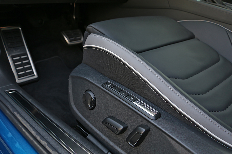 這次試駕的Fastback車款搭配的是Elegance套件,外觀上會以一些鍍鉻處理包裝出典雅的氣息,包括後視鏡外殼都有霧面鍍鉻處理;或許Elegance Premium比不上強調跑格的R-Line車型那樣有魅力,不過既然訴求旗艦,性能和操控本來就不需要被拿來過度賣弄,畢竟多數買家最想要的,還是高品質的豪華氣息與駕乘感。