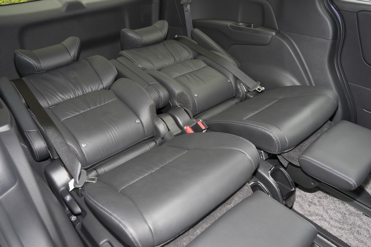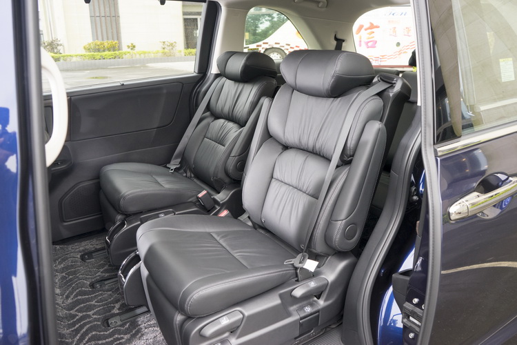 除了大,車室空間更貼心 座椅功能與空間可說是Odyssey最大的優勢,超低車室地板設計讓車室內部空間有更好的高度,且乘客在進出車子時也比較不用屈身,更為輕鬆方便。座椅最大的賣點就是七人座登峰版的第二排獨立式全舒展式紓壓座椅,如同沙發椅的舒適設計且具有腿靠;滑軌範圍很長,若將座椅滑移至最後(第三排不坐人),腿部空間會異常地大,坐起來絕對會有「老闆」的feel啊。或是更誇張點,將第三排座椅隱藏收折至地板之下,可以把椅背完全向後放平就變成躺椅,讓你直接躺著睡到目的地。如果不載人而是要載很多東西,那麼把二排座椅滑移至最前位置所形成的後方行李空間就超級好用。