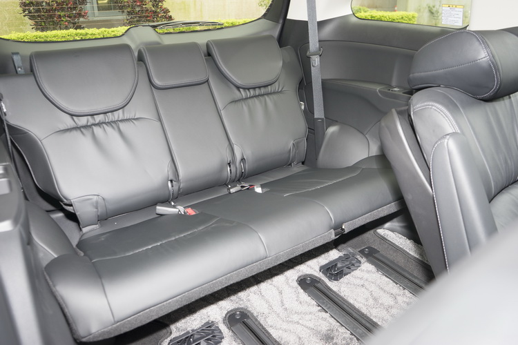 第三排座椅在二排座椅位置居中時如果是170公分以內乘客乘坐時,雖然腳部沒有甚麼活動空間,膝蓋卻也不會去頂到二排椅背,載小孩自然更不用說(也還有小杯座可放飲料),算是許多七人座廂旅中表現很不錯的第三排。不用的時候也可以透過幾個不會太費力的動作就將座椅翻折隱藏至車室地板下,挪出行李空間或是給二排座椅更大的空間。還有一個妙用就是掀開尾門將它外翻變成觀景座椅讓你坐在後方看著外面,在露營或從事戶外活動時就很好用。