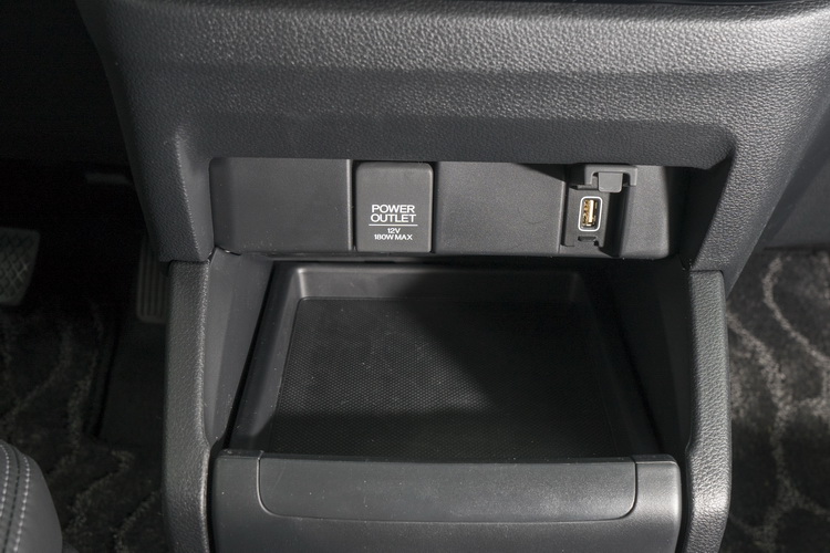 而在一些內裝細節上,隨著前方控台的大換新,空調出風口形狀改為扁平配置位置也有所不同。副手座前方除了手套箱外,還有上方的隱藏式上掀蓋置物盒可以放置一些物品。方向盤旁邊增加一個伸縮置杯架方便駕駛拿取飲料。前排座椅中央加入了一個空間很大的滑蓋式置物箱,或許是為了因應大部分買家與其說是在前後排間方便地移動,會更在乎置物需求所做的考量。而在大眾對行動裝置極為依賴的現在,新Odyssey也提供了不少2.5安培USB插槽:中控台一個、副手座一個、第二排兩個(充電用)讓乘員可以輸出音訊或幫手機充電不用搶來搶去。中控台與第三排也各有一12V電源插座來滿足供電需求。