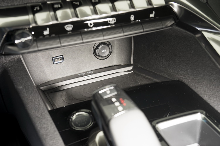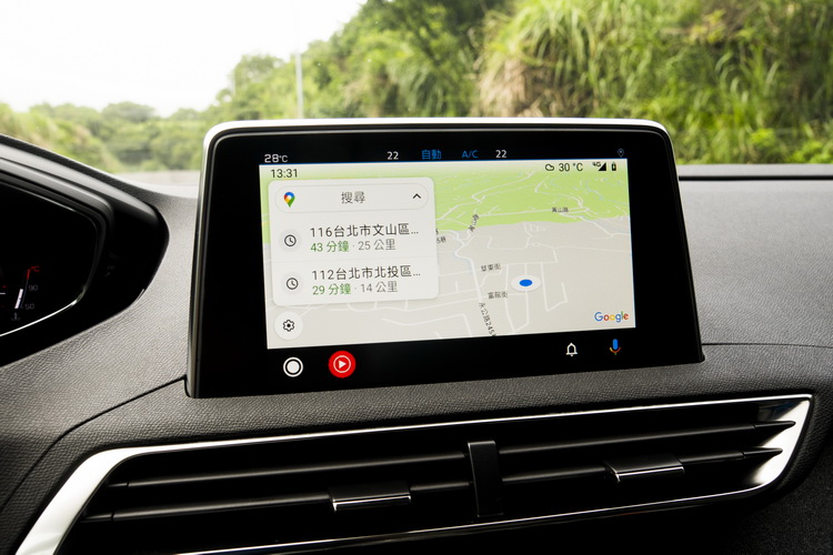 中控台上配置八吋全彩多功能觸控螢幕,除了空調、音樂播放、車輛功能設定、照片播放與安全相關系統顯影功能外,所內建的PEUGEOT Mirrorscreen鏡設系統支援Apple Carply、Android Auto與MirriorLink等平台來整合智慧手機操作。實際使用Android Auto測試下偶爾還是會有連線不穩情況而跳出功能、或反應出現一點遲滯,不過大致上運作還算正常。為了滿足車主在行動裝置的充電需求,除中控台下方有一個USB插孔與支援Qi無線充電功能的手機置放格以外,後座空調出風口下方也有兩個USB插孔。