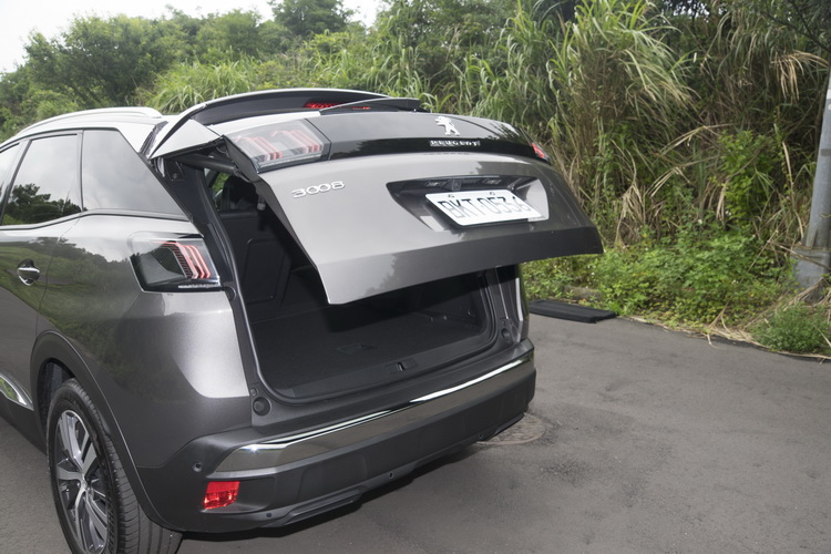 行李廂標準狀態下容量為520公升,將後座椅背向前放倒後可以將行李空間擴增至1482公升,且可以方便地從行李廂位置以One Touch操作來放倒後座椅背,全車系除了最入門的1.2PureTech Design車型外都標配腳踢感應式電動啟閉尾門,在行李物品的取放上又更方便些。