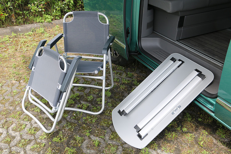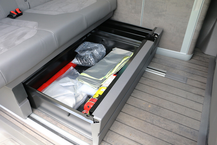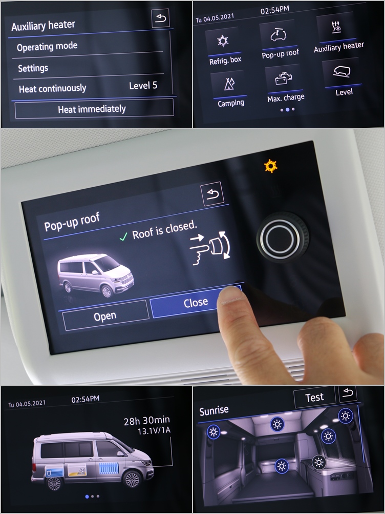 ![]() ▲California Ocean無負擔的造型讓它得以融入都會生活,假日隨即成為休旅野營的好夥伴。位於側滑門內部則收藏了一組隱藏式鋁合金折疊桌,我們發現它不需額外的機構就能牢牢地固定在車門內部,不但節省空間,而且試駕一整天下來也也沒有出現任何震動噪音的問題。有桌子當然少不了椅子,打開後尾門內的拉鍊布袋,裡面就有兩組折疊椅,和折疊桌同樣都是採用鋁合金材質,關節支點的穩定性還很不錯。 ![]() ▲座椅下方的大型抽屜是最方便取放雜物的收納處,因此滅火器就固定在此處。![]() ▲駕駛艙換上全新設計的中控台、數位儀錶和觸控螢幕主機,前擋則配置了隱私捲簾的配備。![]() ▲多功能中央控制面板升級為彩色觸控螢幕,雖然並無中文化,不過圖像化選單設計很容易就能上手。![]() ▲包括三區恆溫空調和室內空氣粉塵濾淨器都在標準配備之中。