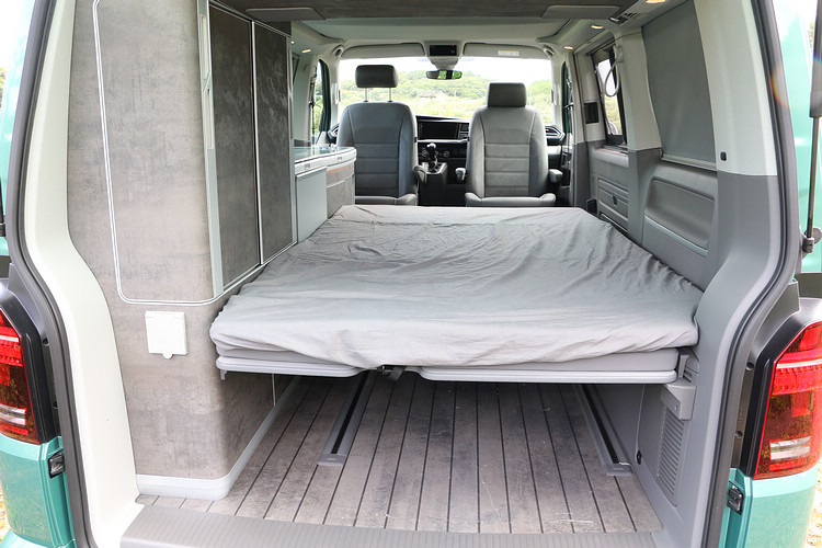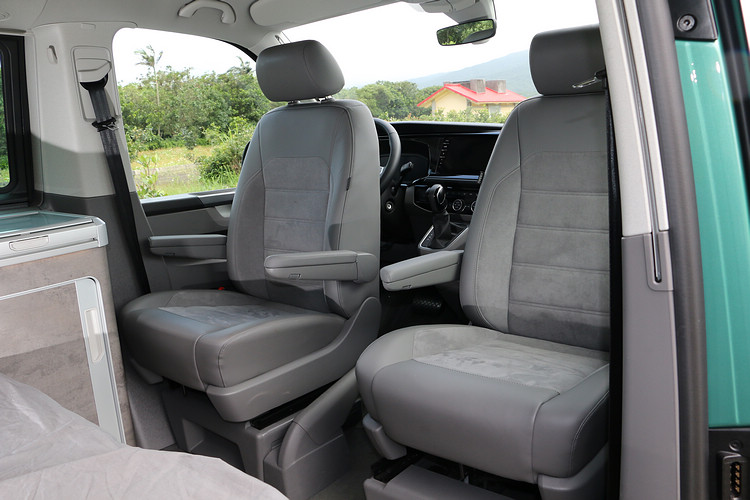 ![]() ▲T6.1 California Ocean 4MOTION以5米不到的車身載著旅館到處走,讓野外露營更輕鬆。California Ocean是福斯商旅最頂級的露營車,外表看起來和大家熟知的廂型車沒有太大差別,之所以敢稱為露營車,不是因為有超大空間能夠裝載裝備,而是它同樣有一體到位的生活機能,隨時隨地就能變出客廳、廚房和臥室,並且預留了水、電、瓦斯的供給擴充設備,電動操作功能也增加了使用上的便利性。