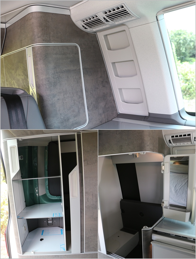 ![]() ▲流理台有水槽、水龍頭和爐具及冰櫃,強化玻璃製造的霧面蓋板同時也能作為砧板來使用。相對於比較入門的Beach,高階的Ocean車內廚具配備更齊全,標配的流理台除了基本的水龍頭、水槽以外,還有兩組爐具和冰櫃,以及附掛折疊桌板的設計,加上活動式櫥櫃儲物空間大、隔層多,可以輕鬆應付露宿野營的需求。 ![]() ▲廚房附掛折疊桌板,還有活動式櫥櫃提供儲物需求。![]() ▲雙前座可旋轉180度面向後方,不過駕駛座受限於流理台和方向盤,腿部空間和椅背角度會因此受到限制。![]() ▲翻平後座椅就能成為一套雙人床,標配就有折疊式床墊,舒適性相當不錯。![]() ▲車頂帳打開前必須先把拉簾推開,行駛中最好也關上,避免帳篷布下垂影響視線,並可減少風切聲。![]() ▲後廂照明可拆下當作手電筒,貼心的設計相當實用。![]() ▲除了多組櫥櫃,後廂上方還設有大型收納空間能夠用來收置棉被。