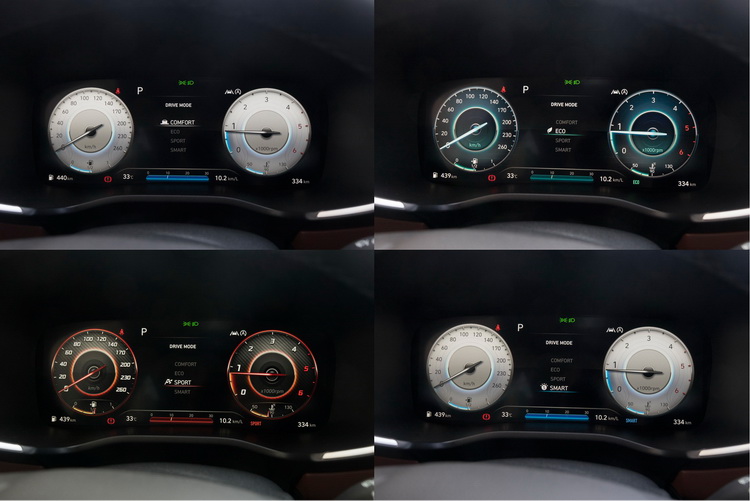 駕駛者前方從之前的七吋數位儀錶升級微12.3吋的TFT-LCD數位儀錶,除了會隨駕駛模式而變換不同風格外,也會顯示駕駛輔助系統相關的影像或動畫,例如在打方向燈切換車道時也會顯示左/右側影像。