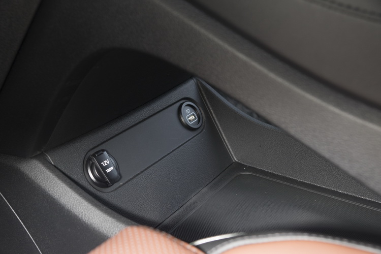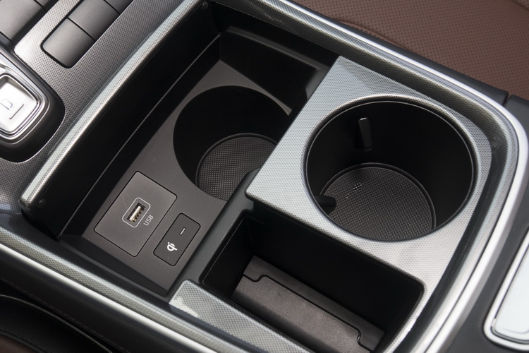 把中控台整合至中央鞍座中 前方控台沒啥變,但中央鞍座可就是徹頭至尾的大改了,高置式的鞍座控制台看起來比一般中控、鞍座分離的方式更有整體感(不過老實說類金屬部分的「金屬感」不強)。排檔在採用電傳線控系統下取消了排檔桿,只要按下各個檔位按鈕就可以切換至所需檔位。旁邊則是駕駛模式切換的旋鈕。後方則是置杯座與直立式的Qi智慧手機無線充電座,充電座固定性不錯,不會因行駛晃動影響充電。
