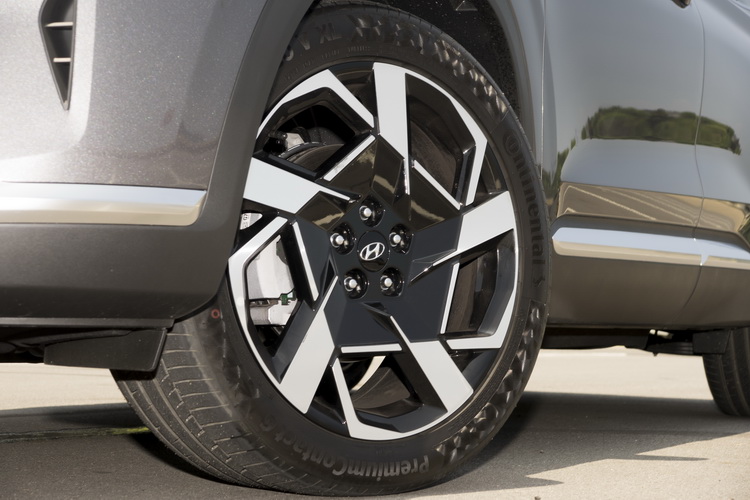 光從外觀上先看,在水箱罩部分就讓人對這次的小改會「有感」。改款前的六角型水箱罩因為有向內縮的關係,在視覺上並不特別大器,新款則是幾乎佔據八成車寬的大面積造型,給人的霸氣感就很夠,鍛面鍍鉻的處理也有不錯的質感,連帶地也讓前保桿的氣壩更有存在感與風格上的同調感。配合水箱罩造型變化,LED頭燈設計也跟著調整,細長的日行燈雖然燈殼造型沒什麼變,但內部LED光條則改為「T」字形設計延伸至頭燈組。鋁圈依車型不同配備17至20吋尺碼,這次試駕的GLD-B車型是配20吋,造型也與改款前不同。