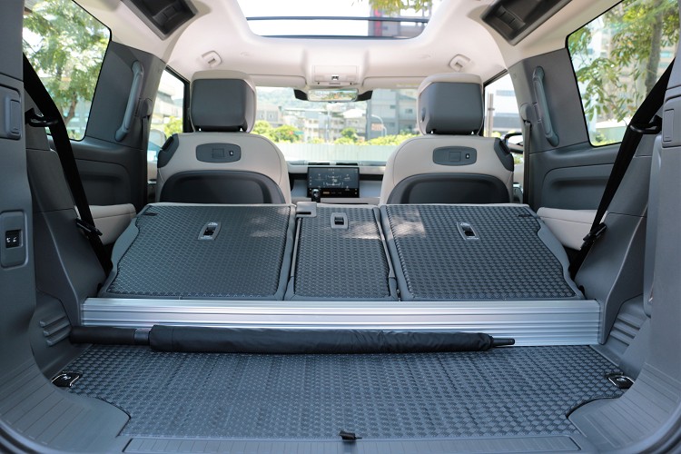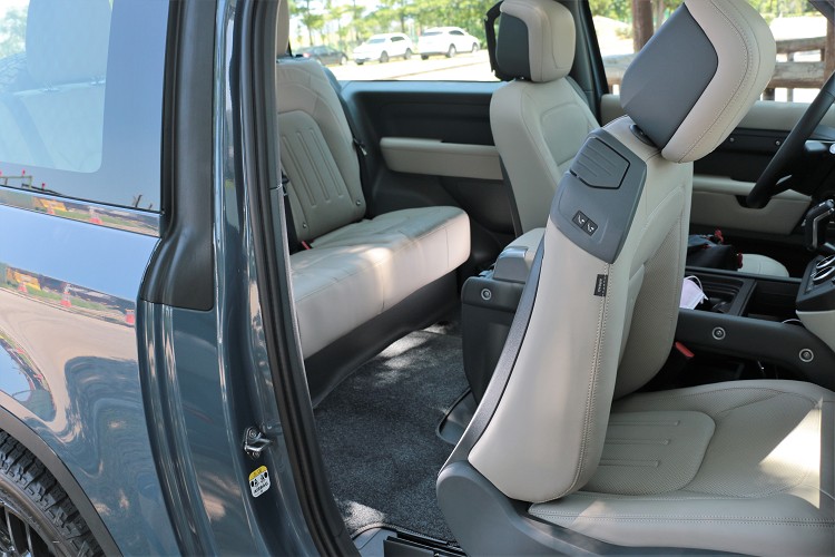 短軸車型最大不同在於後B柱之後,為了要得到寬敞的乘坐享受,刻意將後座椅向後移,用行李廂容積來換取乘坐區域,老實說90與110的後座寬敞程度相差不大。唯一要吐槽的是90後座上下車相當不便,尤其是試駕車選了頂級奢華內裝套件,前座椅升級成14向電動調整,後座乘客進出必須先拉把手將椅背放倒,再去按下座椅前移按鈕,實行兩個動作,但如果是標配座椅,只要拉把手椅背跟前移會一起作動,強烈建議維持標配就好。後行李廂空間受到座椅擠壓,在標準的情況下只有89公升,如果真不夠用,則可傾倒後座椅背,便可換取更大置物空間。