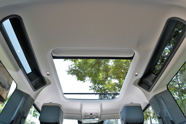 ▲後座左右觀景窗是Defender經典元素,試駕車選配折疊式帆度車頂,帥氣度增加卻影響隔音。