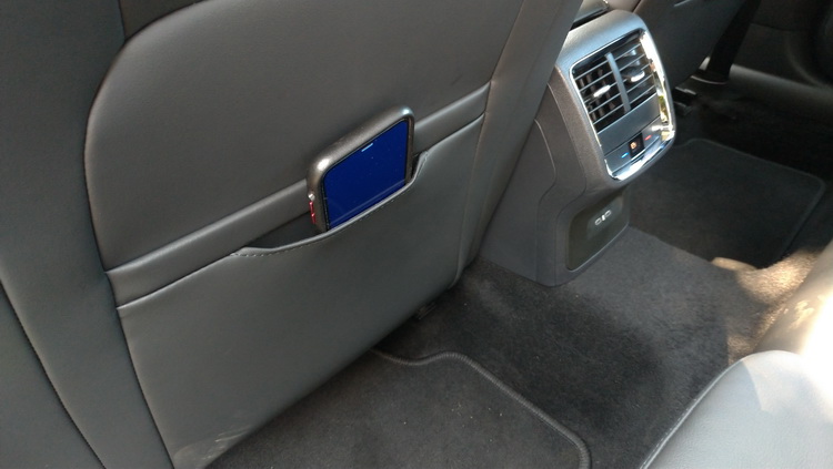前座椅背有收納手機專用的設計,方便取放。
