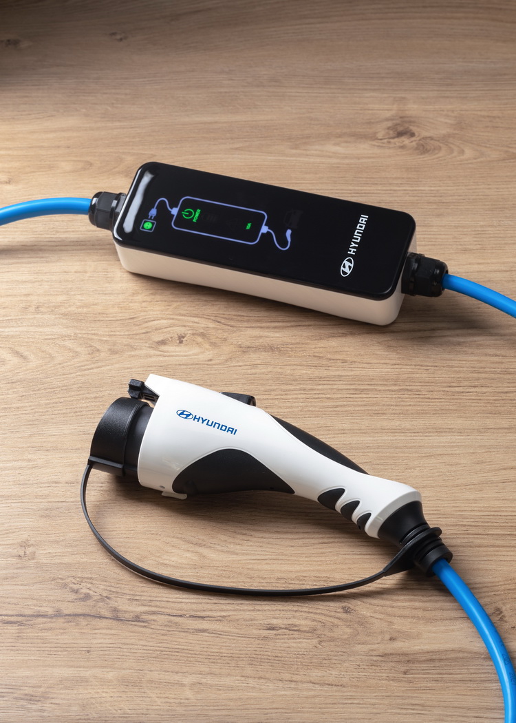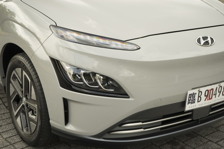 因為歸屬於Kona車系,並非什麼專用設計電動車,Kona Electric在內外設計上大致是維持與全車系相同。外觀上主要的差異集中於引擎蓋前緣之前,畢竟是電動車沒有水箱罩,在這個位置車廠設計了一條水平摺線,感覺有點像TESLA Model 3車頭那一道。充電口外蓋就在這道摺線之中。前保桿的散熱導流口有智慧進氣啟閉系統,會配合車速的高低來開關,低速可確保散熱效率、高速可減低風阻。LED序列式頭燈換成三眼式設計,眼神犀利許多。