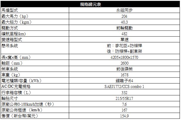 高規的EV500搭載64.0kWh鋰電池,可輸出204hp馬力與40.3kgm扭力。