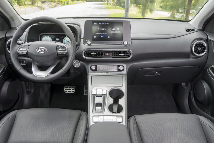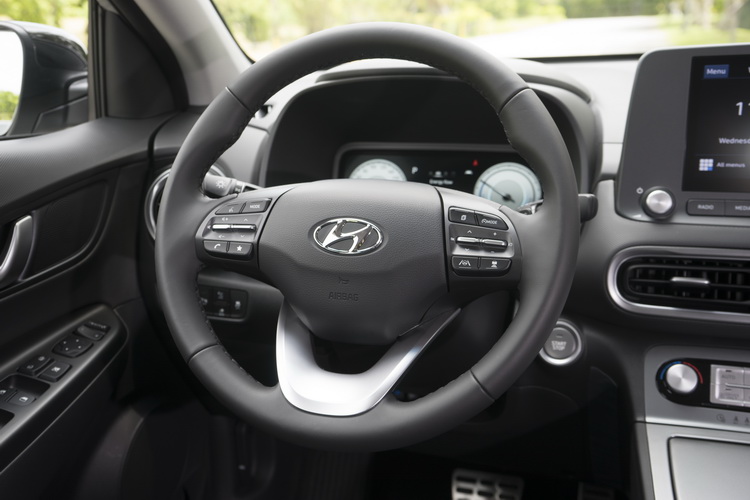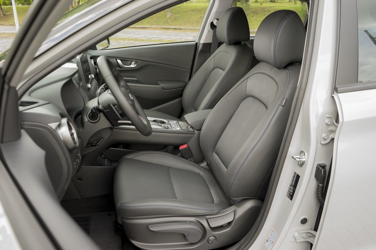 Kona Electric在懸吊結構是比照四驅車型的前:麥花臣+防傾桿+工字樑、後:多連桿+防傾桿+副車架。給人的操控紮實感已經媲美歐系車,過彎時對車身的側向支撐、動態穩定水準都在同級中算前段班。因應電動車的大動力輸出,車廠也對前懸懸吊幾何做調整並對後懸雙下臂採最大化設計來強化。因此在套上夠勁的電動系統下已經能夠帶來比1.6T高出一級的駕駛樂趣。