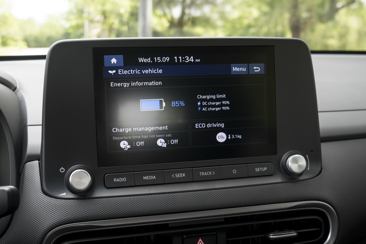 Kona Electric電動車共提供EV300與EV500兩種車型,我們這次試駕的是較高規格的EV500車型。所搭載鋰電池的蓄電量達64.0kWh,續航里程最大約可達482公里。最大馬力輸出為204hp、最大扭力輸出為40.3kgm,採用單速變速箱。