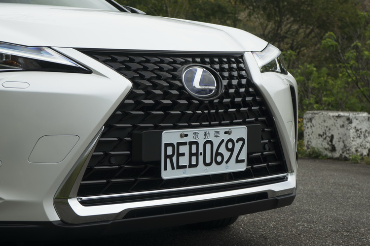 不強調E屬性的外觀 就如我們之前試過的HYUNDAI Kona Electric一樣,UX 300e是直接拿現行UX的車身來搭載純電動力系統,而不是搭載於電動車專用的底盤或車身之上。所以車身尺碼基本上是跟車系中其它車型一樣,只不過為了要在車底配置電池,所以車高比其它車型多出25mm,但車身距地高度卻減少了20mm。 由於外觀部分與其它車型大致相同,從路旁一眼望去不容易辨識出它的「電動車」身分,不過還是由幾個細節可以用來區分。首先是水箱罩雖然造型與其它車型看似相同,但其中有更多的孔洞是封閉的,這樣可以在確保「引擎蓋」下方的動力系統控制模組有充分散熱的前提下降低風阻,特別是中高速行駛下風阻對於耗能的影響相信大家都了解,而電動車非常在意耗能這件事也不用多說。