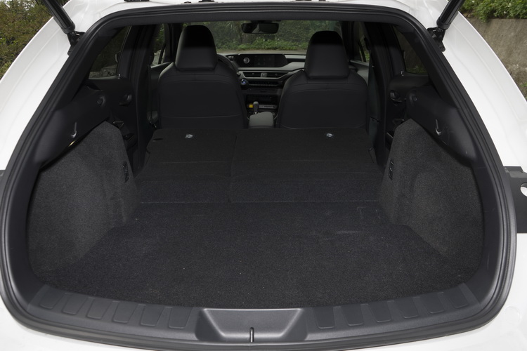 值得注意的是,由於需要在車底配置鋰電池組,特別是後座下方會占用到一些空間,所以坐在後座時會發現腳的位置會較高些,對坐姿/舒適度會稍有影響(這一點在之前試駕到的Kona Electric就比較感覺不到),而在前後座頭部空間、膝部空間等乘坐空間上則沒什麼影響。後行李廂空間在標準狀態下為416公升,只比汽油引擎的UX 200只稍微少了10公升,不像油電動力的UX 250h是大縮至368公升。