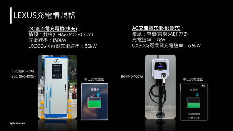 至於車主最關心的「剩餘續航里程」則是顯示於檔位指示的下方,筆者個人是覺得字體可以放大一點啦,相信不少有里程恐懼感的車主會時時盯著這個數字。而在充電時,也可以透過充電設定的功能來做充電排程或充電電流、充電上限、連接器鎖、電池冷卻器等的功能設定。車主也可以透過在智慧手機上安裝「LEXUS EV+ APP」來尋找附近的充電站或是查詢充電紀錄。