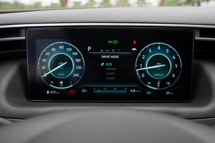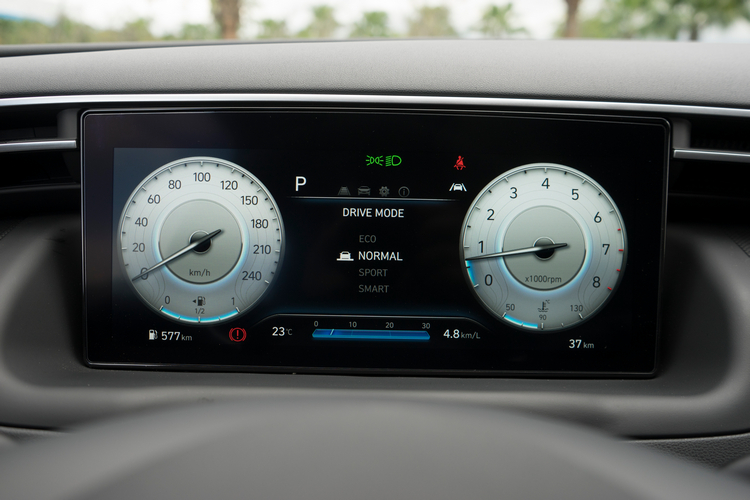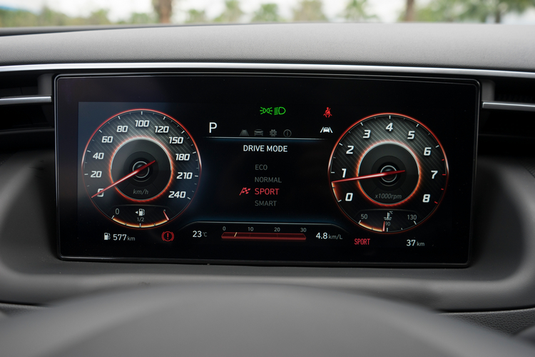 特別是在低速域加速的時候,由於Tucson L在1500rpm左右峰值扭力就已開始輸出,加速表現會比其他對手要好許一些,更別說對手之中搭載CVT變速箱的車款,在扭力拉升的反應與速度上就更難與之匹敵。 如果硬要小小抱怨的話,大概就是在「Normal」駕駛模式下起步與低速時如果油門不略踩重些,有時候變速系統在檔位判斷上就會不夠明確,造成車身頓挫。有時在切換車道後油門踩得不夠深,在引擎轉速爬升之餘加速力卻也姍姍來遲會慢個一拍才出現。在切到「Sport」模式之後情況就好了許多。如果不是很在意油耗的話,使用Sport模式就算不是為了胚快,至少也可以讓你在行駛時有更順暢的加速體驗(又或者可嘗試用Smart模式,花一點時間讓系統來學習)。
