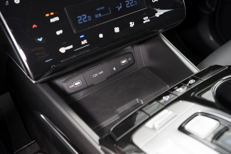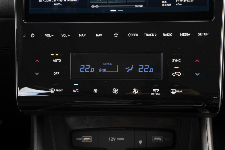 在中央鞍座上,之前試駕Kona Electric所見到的按鍵式電傳線控排檔介面又出現了,用大大的按鍵來取代傳統排檔桿雖然讓駕駛者少了幾分「掌控感」,很像在控制3C產品。但操作上好懂就手,且前座中央肘枕的高度讓駕駛者在手肘靠著肘枕操作時格外舒適,應該會逐漸普遍化於品牌旗下各車款之上。