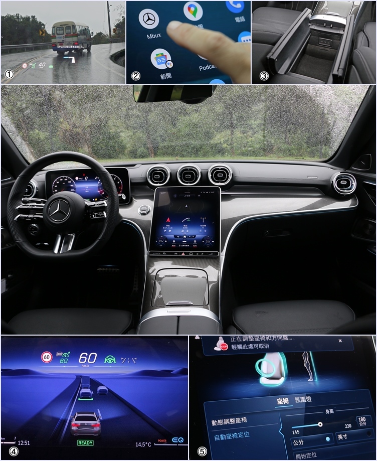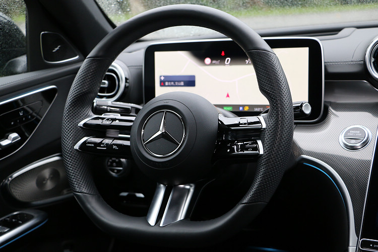 方向盤的電容式設計則是不同於傳統按鍵式操作,只須雙手輕觸就能感應,而C300搭配的平底式跑車方向盤還採用左右雙肋設計,各個功能的操作有各自獨立的區域,減少了誤觸的可能,但得花點時間才能習慣手感。C300除了標配Burmester環場音響系統,也有MBUX擴增實境的導航功能,可惜不像S-Class直接把畫面投射在駕駛前方,而只能顯示在中央螢幕上,實用與安全性因而大打折扣。