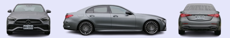 全新C-Class有更多向高階車系看齊的設計細節,改款後的車身尺寸全部放大,車長和軸距分別增加6.5cm和2.5cm,連帶也讓輪廓比例有了微妙的變化。水箱罩無疑是所有賓士車最吸引眼球的部份,不同於上一世代的鑽石型設計,大改款C-Class改成上窄下寬的A字型,同時在底襯部份也增添三芒星元素作為點綴。新的LED頭燈平均高度明顯高於水箱罩,造型變得更細扁,內部燈組就像S-Class一樣,排列變得更為簡單直接,日行燈也呈現出不同於以往的風貌,可惜真正好用的多光束智慧型數位頭燈必須另外選配。