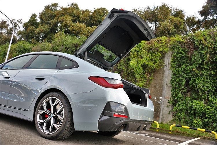 後座的寬敞空間是其餘4系列車型所沒有,獨立車門可以進出,不用狼狽爬進後座;後座空間雖比不上3系列寬敞,但膝部也不會過於侷限,只有頭部稍稍受到流線車頂影響,好在原廠有刻意於車頂處挖洞,不會顯得壓迫。後座有獨立恆溫空調,也有專屬兩組Type C充電孔,跑車不再是兩人空間,四人都能同時享受到舒適乘坐感受。行李廂空間在標準模式下有470公升,透過40/20/40分離可傾倒後座椅背,最多能帶來高達1,290公升的充沛置物空間,結合超級大的掀背式尾門設計,上下物品不受限、輕鬆又愜意。