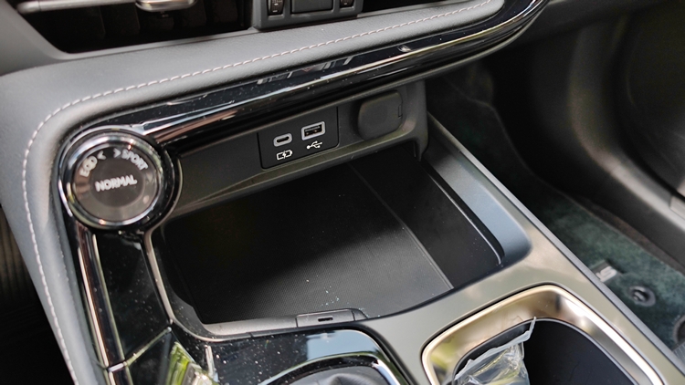 雖然資訊整合系統看起來沒有明確的「首頁」介面版型也不算漂亮,不過常用的音樂/廣播與空調系統容易找到且有實體控鍵選紐讓操作更直覺。中控台下方的置物格沒有支援智慧手機無線充電,不過一個USB與一個USB-C插孔就在上面,這樣還可以邊充電邊使用。