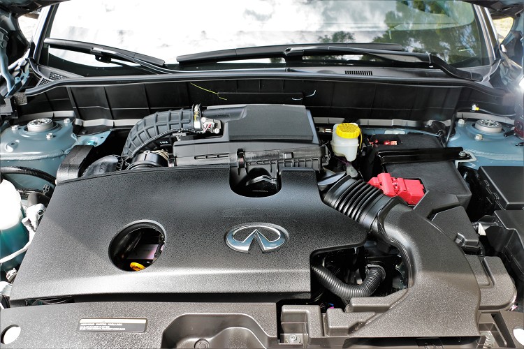 動力方面,搭載一具VC-TURBO 2.0T可變壓縮比引擎,引擎藉由電子控制閥驅使多一組連桿來改變原連桿作動行程,讓壓縮比從8:1低壓縮比到14:1高壓縮比間智能轉換。當渦輪增壓時壓縮比降至8:1來創造高增壓時的引擎爆發力,而當渦輪不增壓時讓壓縮比提高至14:1達到自然進氣引擎效能。除此之外,結合雙燃油噴射系統、雙燃燒循環系統以及超低摩擦鏡面汽缸壁,2.0升四缸渦輪增壓引擎創造出268hp/5600rpm最大馬力與38.8kgm/4400rpm最大扭力,搭配上無段變速系統可模擬八速換檔邏輯,帶來平均12.9km/l的節能油耗。
