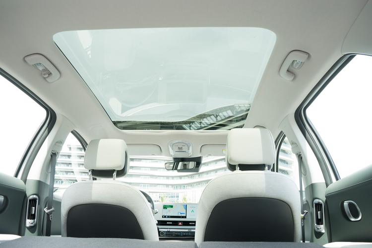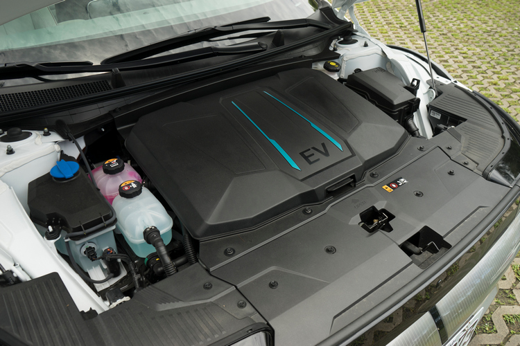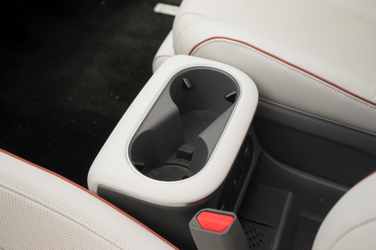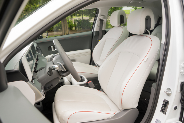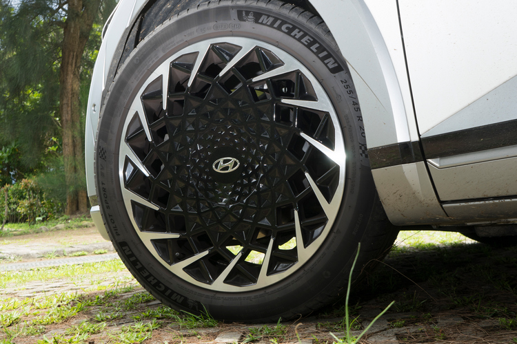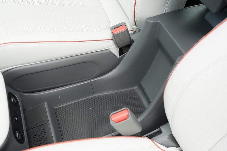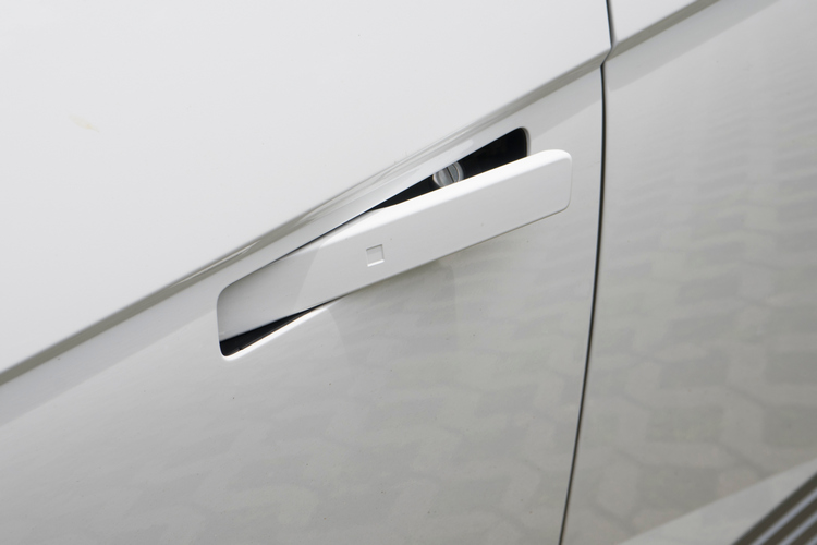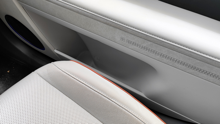 車門把手是平整隱藏式設計,這次所試駕的頂規EV500 Performance車型上具有電動彈縮功能,解鎖時四個把手會自動彈出,上鎖時則會自動縮回,方便乘客使用。所配備的鑽石切削鋁圈造型特別,設計上也著重低風阻的特性,畢竟現在電動車都很在意「耗能」這件事,低風阻也代表降低能源浪費。