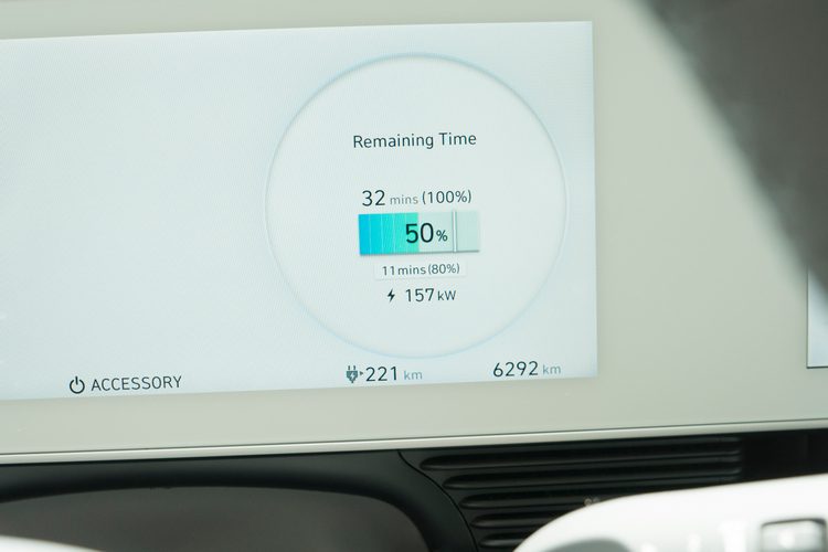 減速時的煞車動能回生可以透過方向盤上的撥片來調整程度,從Level 0至Level 3,減速感都很線性,幫助你更輕鬆與即時地減速,回充電力增進續航里程就不用多說了。你也可以長按撥片開啟自動模式讓系統自行依據與前車距離及道路坡度來調整等級。如果你調到Level 4,其實就是進入單踏板(車廠稱為i-PEDAL)模式,用油門踏板的踩與收就可以控制車輛的加減速,並可減速至靜止。只要習慣了收油時那比較重的減速感,在塞車走走停停等一些情況下就可以開得更輕鬆些。 行路感與結語 前後懸吊分別為麥花臣與多連桿結構的IONIQ 5在操控上給人的第一印象是車身的貼地感很好,從路面傳至車身的震動被吸收得很好,大幅降低車身上下方向的晃動。如果是經過狀況較差、小坑洞多、舖面不平整的道路車身會是傾向跟著起伏,對車內乘客乘坐的不舒服是相當程度的抑制。 電動車底盤較低的重心與配上米其林Pilot Sport EV高性能電動車專用胎之下,也更能對應其瞬間高輸出扭力特性,轉向動態相當穩定,側傾現象也得到相當的抑制。因為畢竟是偏重休旅舒適的設定,在轉向反應靈敏度上還不到跑車的程度,在舒適與駕駛樂趣間還是做了不錯的平衡。