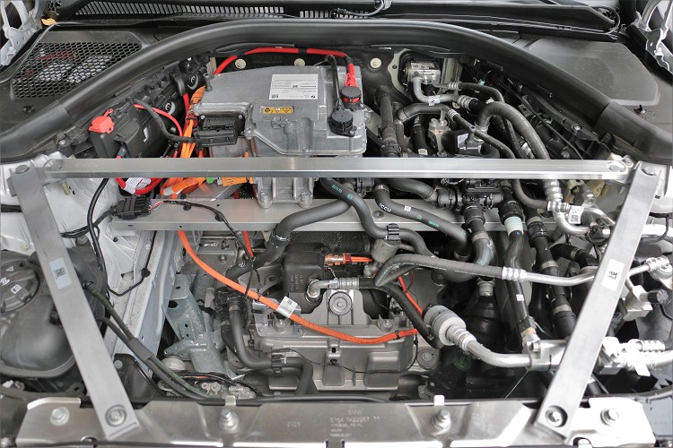 ▲原引擎位置並未設計有置物空間,裡面看得到電動壓縮機、額外電池以及複雜的管線。