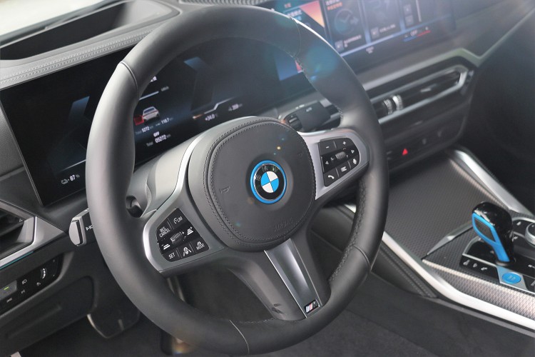 要區別電車和油車的內裝差異,BMW用盡巧思盡可能增加i4巧思,在鞍座區域可以發現以BMW i車款專屬藍色點綴的啟動鈕、排檔桿,方向盤上品牌徽飾同樣以醒目的藍色做裝飾。另外,也將雙前座Sensatec透氣皮質跑車座椅、跑車多功能真皮方向盤、Sensatec皮質儀錶檯包覆與黑色高光澤飾板等列為標準配備。空間方面,與4系列Gran Coupe相同2,856mm軸距,能讓後座乘客享有開闊的座艙感受與寬裕的腿部空間;行李廂空間標準化為470公升,最高可擴充至1,290公升。